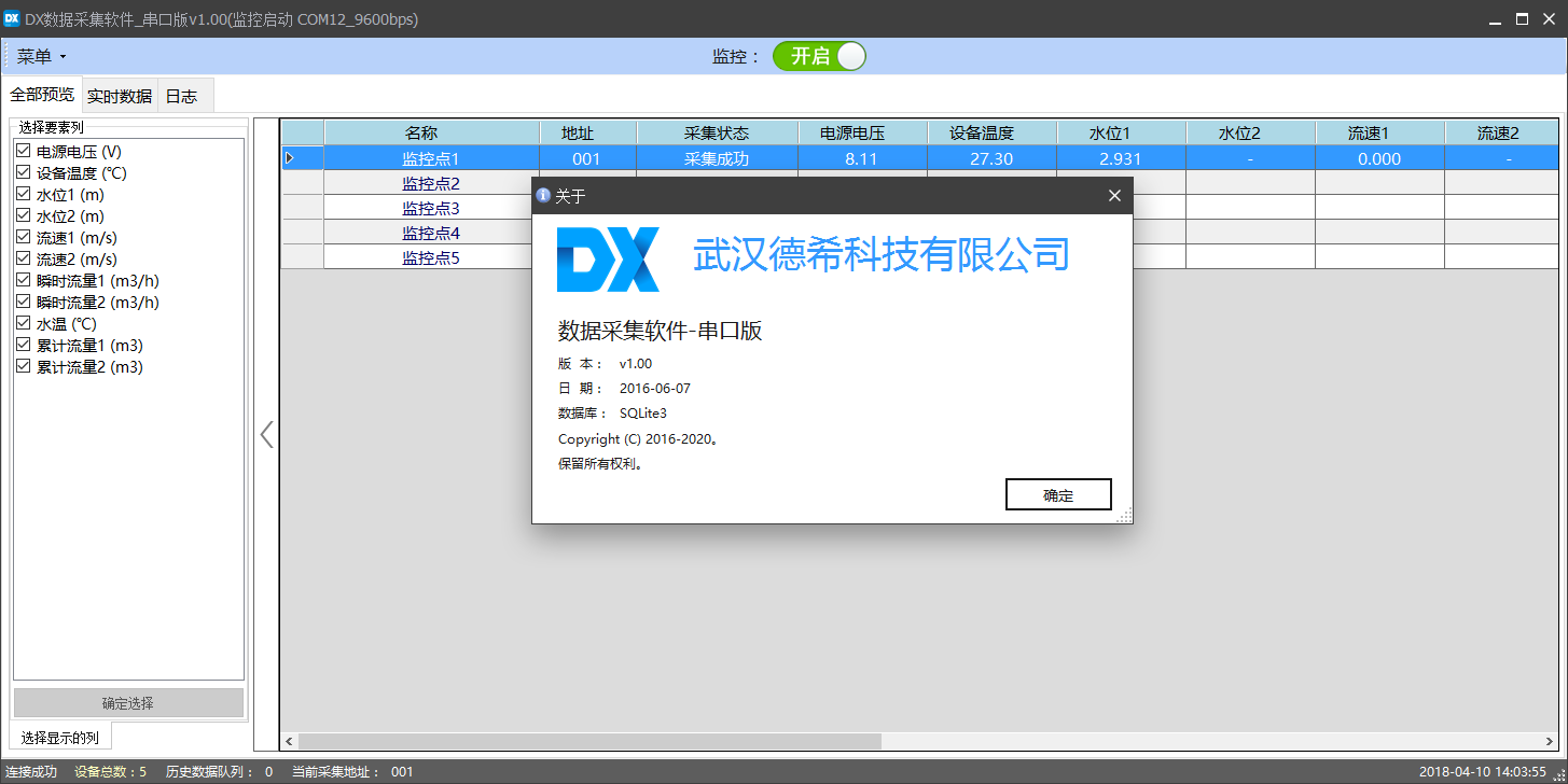 德希科技針對(duì)有人值守的地區(qū)專門開發(fā)區(qū)一套采集軟件,專門用于水庫、閘壩、電站的流量數(shù)據(jù)采集、歷史數(shù)據(jù)存儲(chǔ)、報(bào)表導(dǎo)出。該套軟件免費(fèi)提供客戶使用,將壁掛式的智能化儀表數(shù)據(jù)直接接入電腦,方便值班人員隨時(shí)查看數(shù)據(jù)。